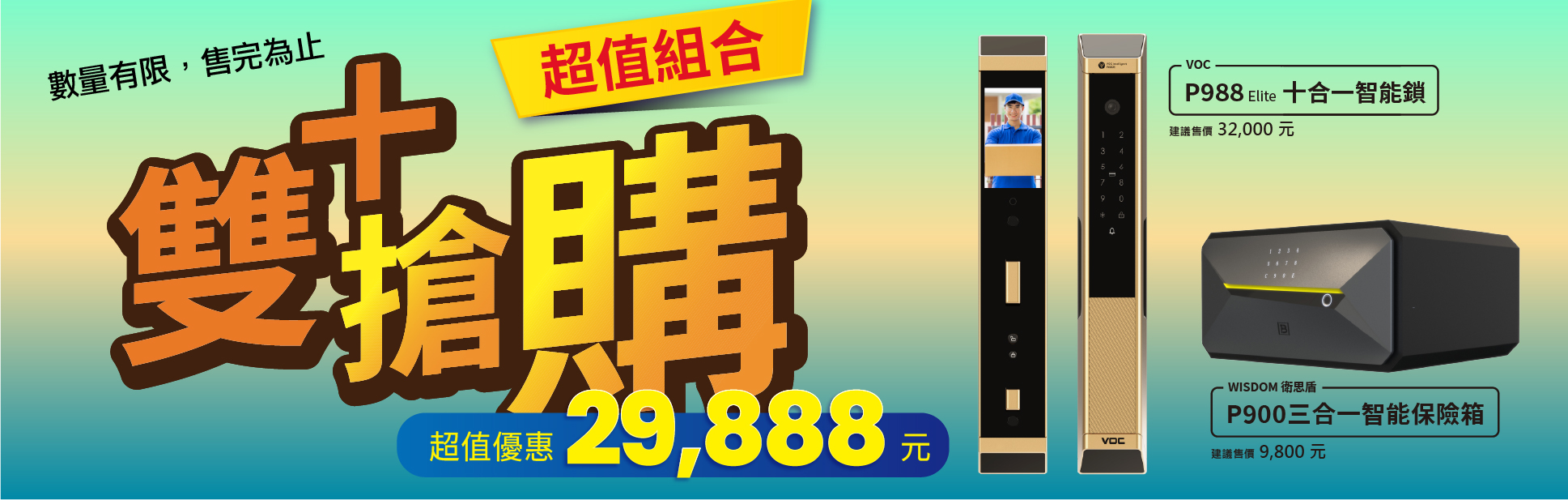 VOC P988 Elite智能鎖 + WISDOM 衛思盾 智能保險箱 周年慶超值方案